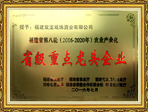 雙龍戲珠酒業(yè)作為福建省白酒研發(fā)中心,榮獲福建老字號產(chǎn)品、福建省農(nóng)業(yè)產(chǎn)業(yè)化龍頭企業(yè)、福建東南窖酒文化館、科技小巨人領(lǐng)軍企業(yè),國家守合同、重信用單位等榮譽。